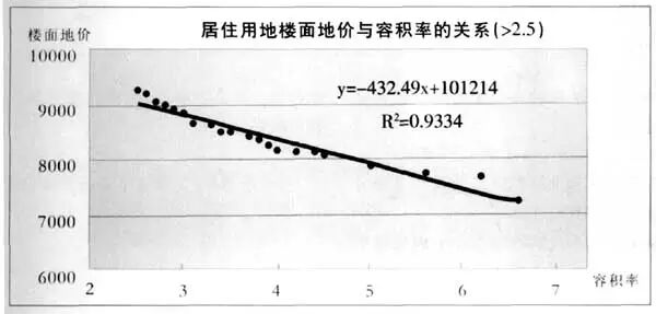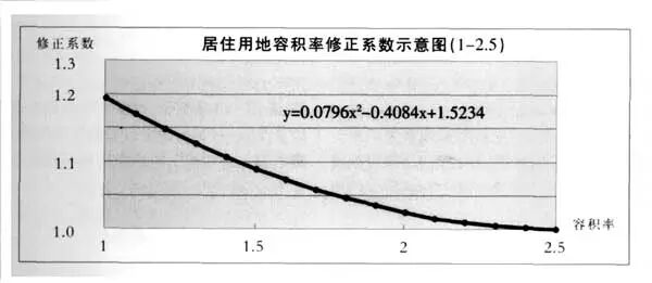 y=0.0796x2-0.4084x+1.5234计算得出。 其他容积率段、其他土地用途以及其他基准容积率条件下的修正体系可同理得出。 |